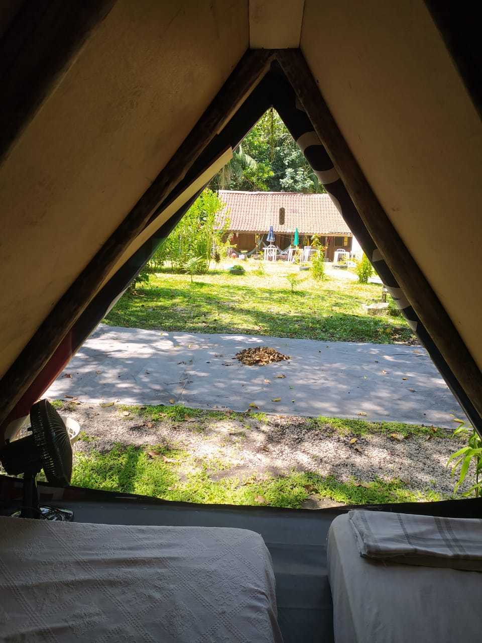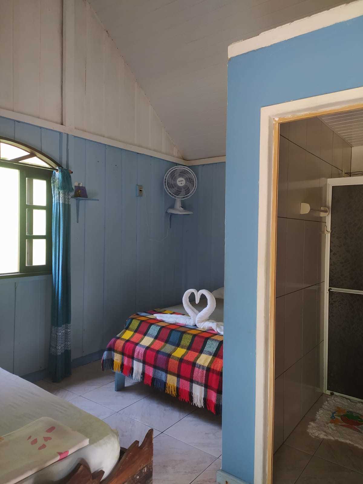 Nossa hospedagem será em Encantadas, no Recanto da Ana Valentin, que conta com espaço para campig, mini chalés e suites. O camping fica próximo ao bar Cavalo Marinho e também da Gruta de Encantadas, um dos pontos turíscos que é possível ir durante o dia.